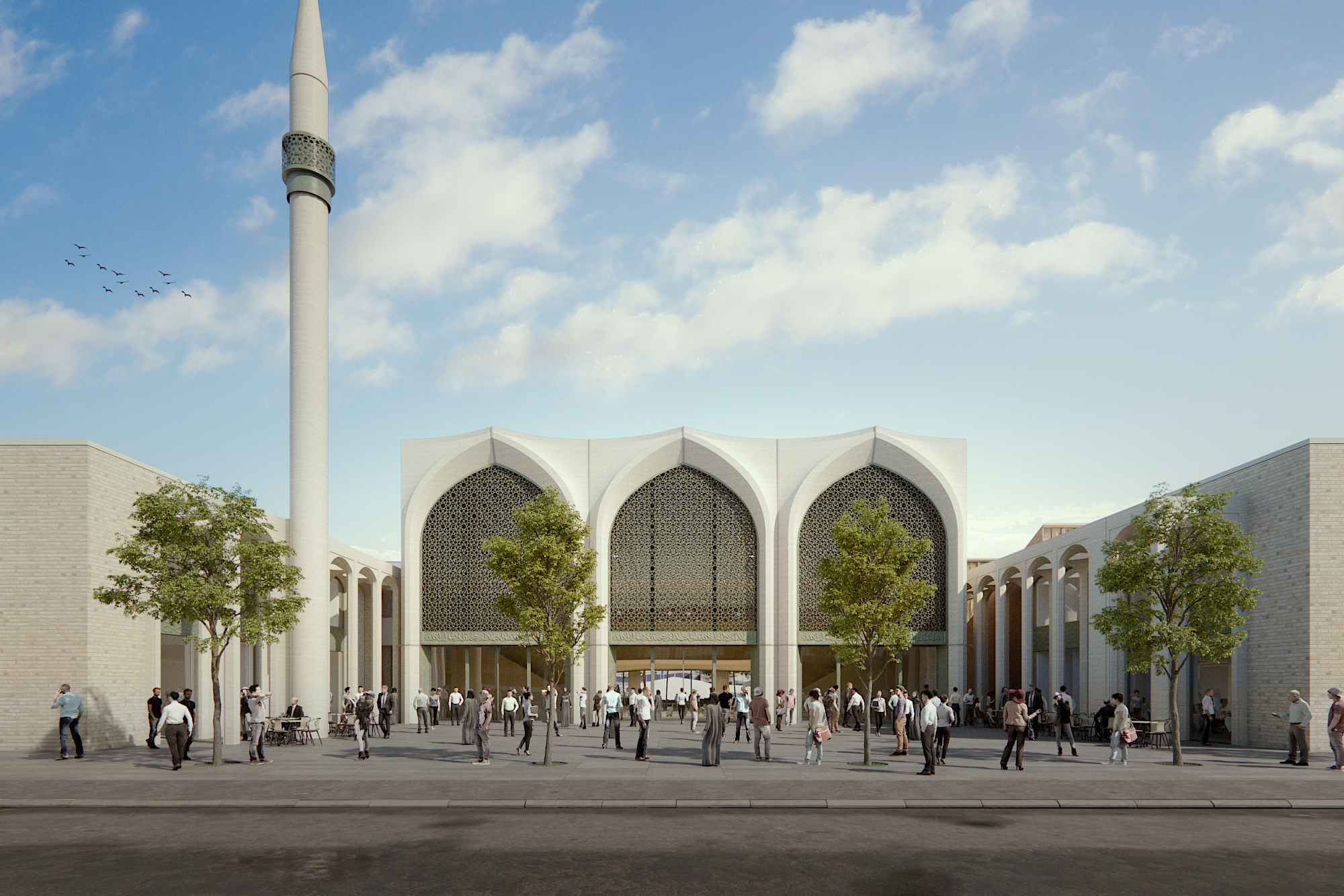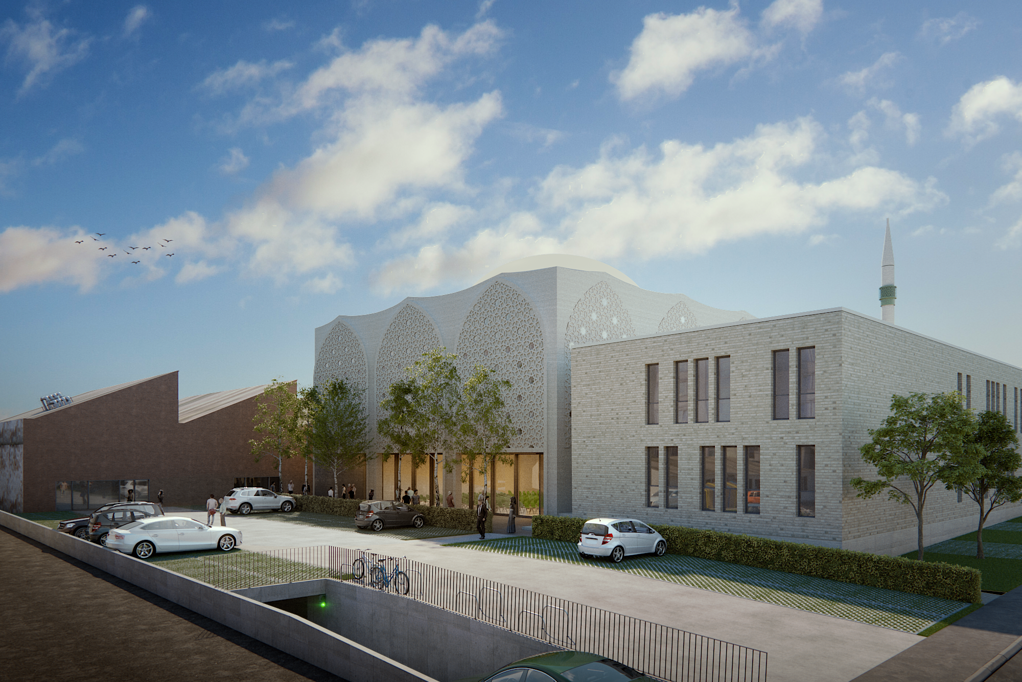 Visualisierung eines Moscheekomplexes in Stuttgart-Feuerbach vom Wettbewerb bis zur Entwurfsplaung – inklusive fotorealistischer Außen- und Innenansichten. Die Renderings dienten der erfolgreichen Wettbewerbsteilnahme und begleiteten die öffentliche Kommunikation des kulturell sensiblen Großprojekts.